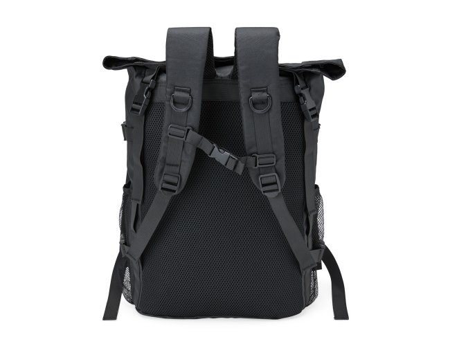 Com um design prático de um bolso gigante, nossa mochila de 37 Litros é a opção perfeita para quem precisa de espaço e versatilidade, seja para lazer, viagens ou trabalho. Resistente à água, feita em couro sintético e nylon, ela conta com bolso frontal com zíper, além de um bolso interno ideal para guardar documentos ou celular com segurança. Com amplo espaço no compartimento principal, ele possui fechamento por velcro, possibilitando que a mochila seja dobrada e reforçada com fivelas ajustáveis, que também estão presentes nas laterais, tornando-a expansível quando necessário. Ainda tem dois bolsos de tela nas laterais, ideais para garrafas ou outros itens essenciais. E para garantir seu conforto, a traseira e as alças são acolchoadas e revestidas, oferecendo uma experiência de uso mais agradável durante o dia a dia.