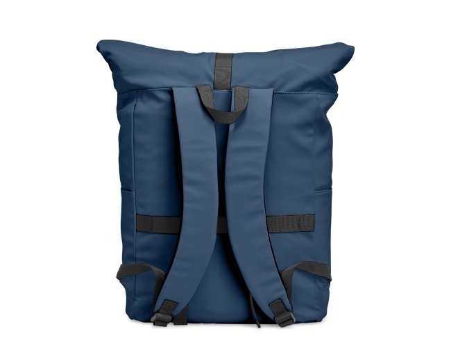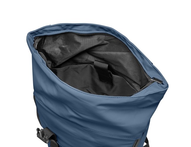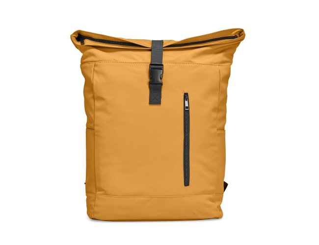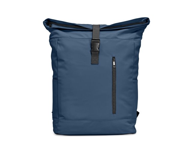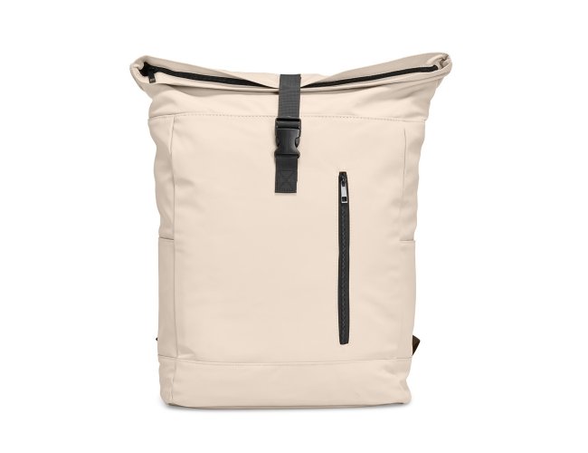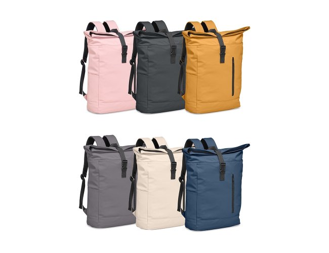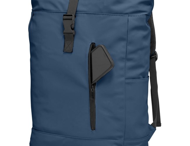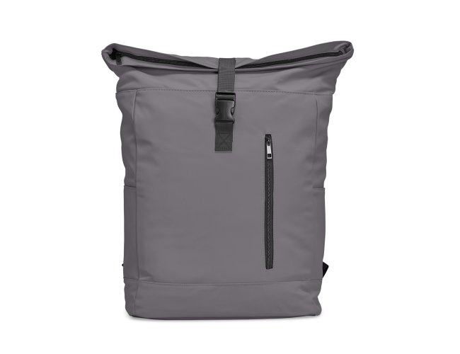 Mochila de couro sintético de 47 litros resistente à água. Possui dois compartimentos, sendo o principal com bolso para notebook de 15,6 polegadas, bolso interno com velcro, dois bolsos laterais, fechamento da mochila por zíper, cinto com velcro e engate para mala de viagem.
