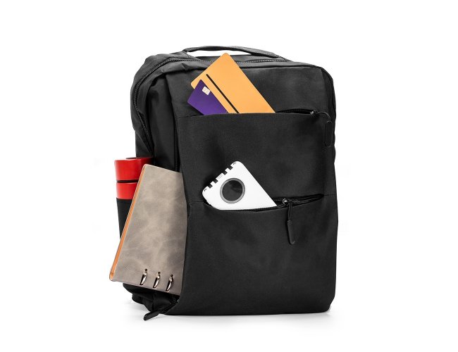 Leve tudo o que precisa com organização, sem abrir mão do conforto. Projetada para oferecer mais comodidade ao guardar os itens, nossa mochila de nylon resistente à água, com 17 litros, conta com 4 compartimentos, sendo o principal amplo, com divisórias para itens como canetas, documentos, cartões e um bolso dedicado para notebook de até 15,6. Na parte frontal, são três compartimentos, sendo um maior, ideal para guardar documentos importantes de folhas maiores. Para facilitar ainda mais a rotina, ela possui um bolso lateral, perfeito para garrafas ou itens menores, além de uma entrada USB, garantindo mais praticidade para manter seus dispositivos sempre carregados. Essa mochila é tudo o que precisa para acompanhar seu ritmo e manter tudo no lugar, aonde quer que você vá.