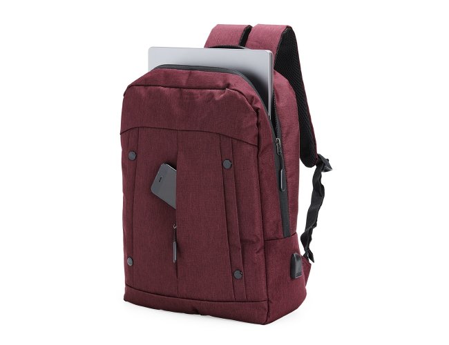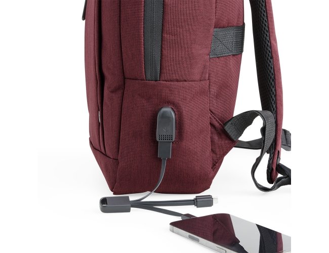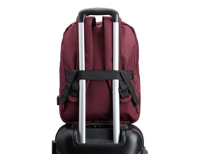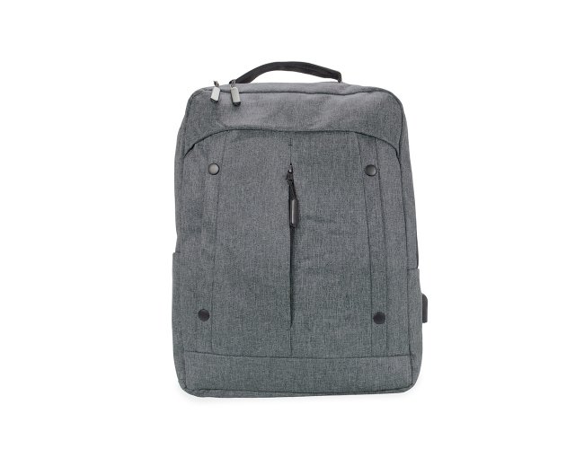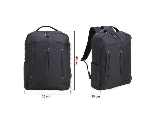 Mochila de nylon 20 Litros com dois compartimentos, sendo o principal com bolso para notebook 15,6. Com divisórias internas para acessórios, a mochila possui bolso lateral, suporte externo USB e alça para engate em malas de viagem.