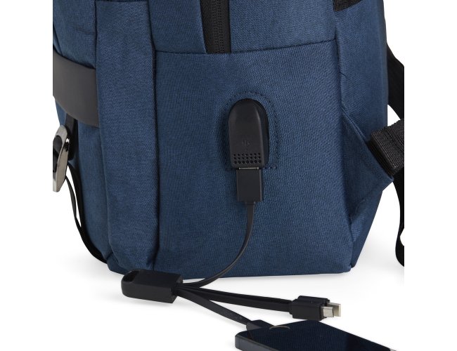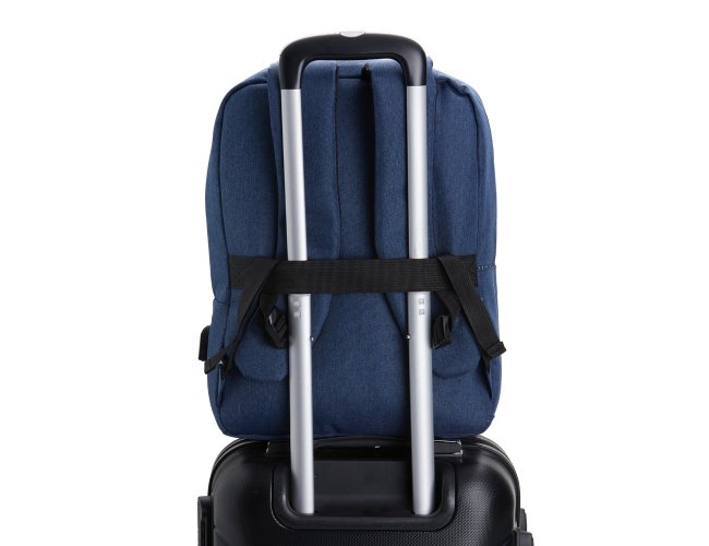Mochila de nylon 24 Litros com 3 compartimentos, sendo o principal com bolso para notebook 15,6. Com divisórias internas para acessórios, a mochila possui bolso lateral, suporte externo USB e alça para encaixe em malas e viagens.