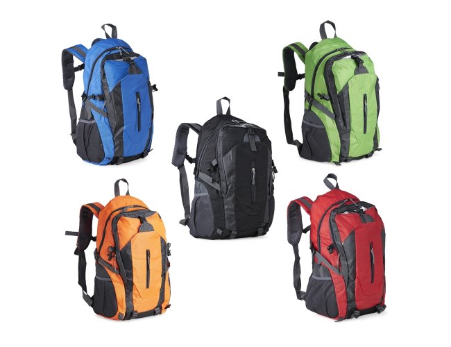 Mochila esportiva de 28 litros em nylon resistente à água com quatro compartimentos, sendo o principal com bolso para notebook 15?6 polegadas. Contém bolsos laterais em malha, alças e área costada com revestimento espumado e alças de compressão.