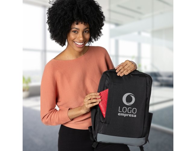 Mochila de nylon 21 litros com dois compartimentos, sendo o principal com bolso para notebook 15,6. Com divisórias internas para acessórios, a mochila possui bolsos laterais, suporte externo usb, duas alças de mãos e alça para engate em malas de viagem.