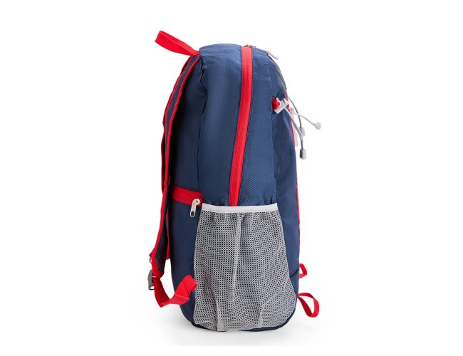 Mochila dobrável confeccionada poliéster resistente à água e com capacidade máxima de 23 litros. Pode ser transportada como um estojo compacto enquanto dobrada e, ao ser desdobrada, apresenta um compartimento interno com uma divisória. Além disso, também possui um bolso frontal amplo, outros dois bolsos laterais em rede com elástico, um compartimento traseiro antifurto e um par de alças com revestimento em espuma respirável.
