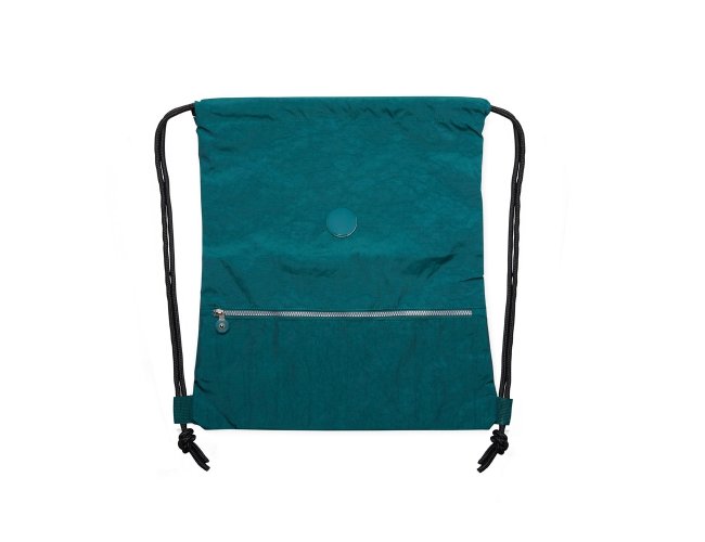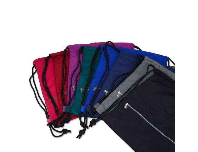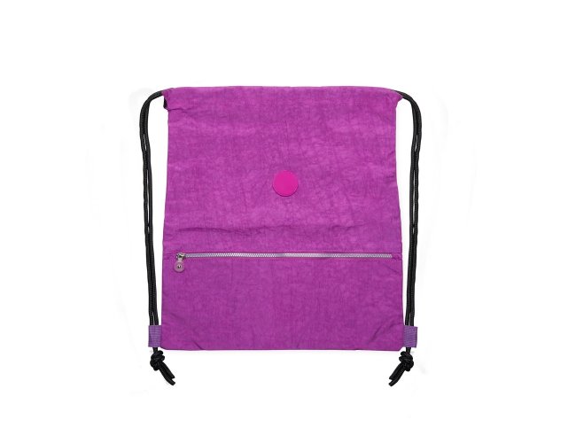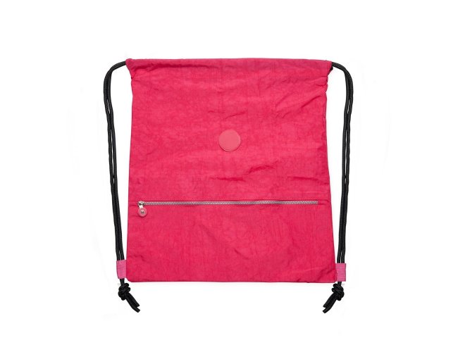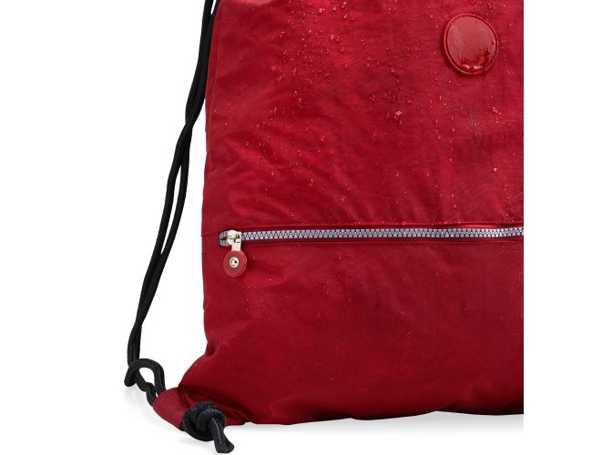 Mochila saco confeccionada em nylon impermeável e alças de nylon. Conta ainda com bolso frontal com fechamento em zíper e detalhe em plástico no puxador, além de uma placa emborrachada personalizável.