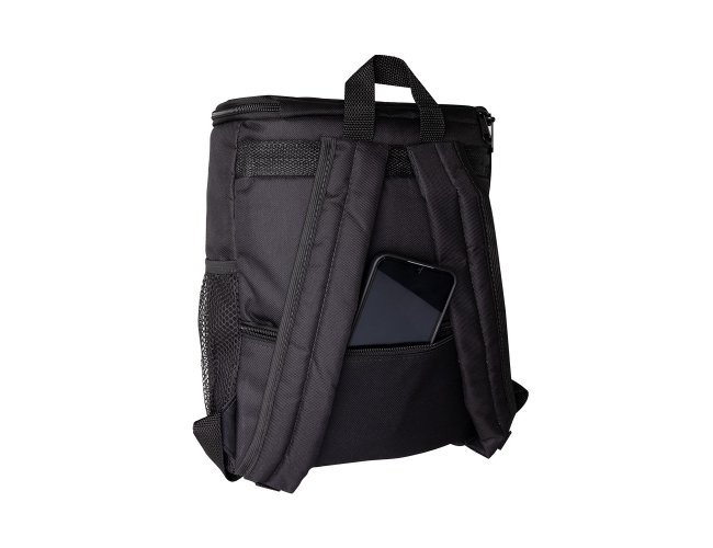 Mochila térmica 10L confeccionada em nylon, possui três compartimentos, sendo o principal térmico com saco antivazamento, um exclusivo com proteção antifurto e bolsos laterais telados.