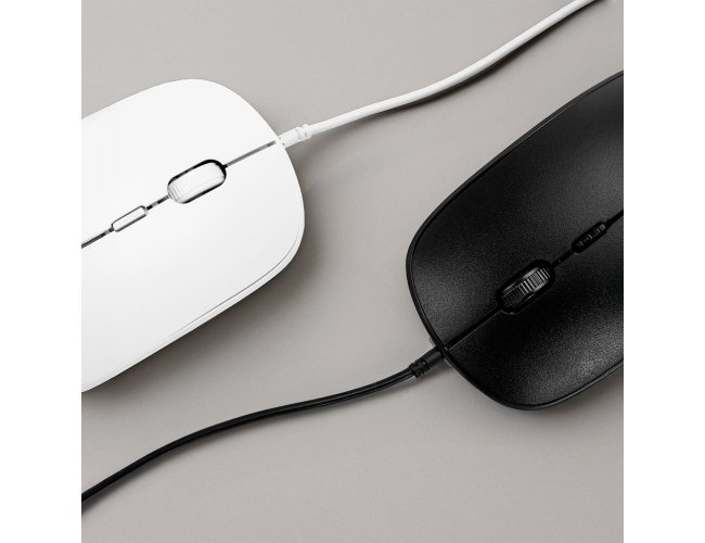 Mouse óptico com fio de 1,5 metro de extensão e botão DPI para ajuste de sensibilidade do periférico.