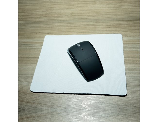 Mouse pad neoprene formato retangular com parte inferior emborrachada antideslizante.