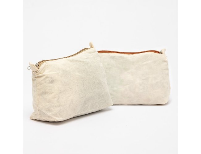 Nécessaire em algodão com zíper, frente e verso liso, com duas alças pequenas para acesso de chaveiro ou gancho.
