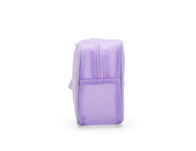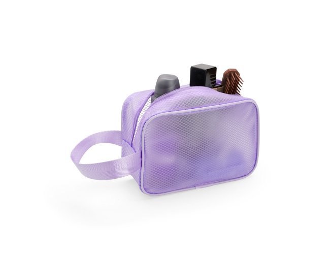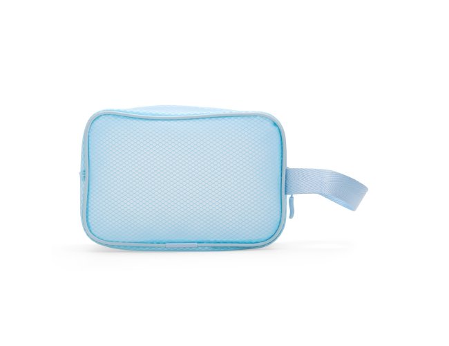 Nécessaire impermeável à água e confeccionado em EVA. Conta com abertura e fechamento em zíper e alça lateral em nylon.