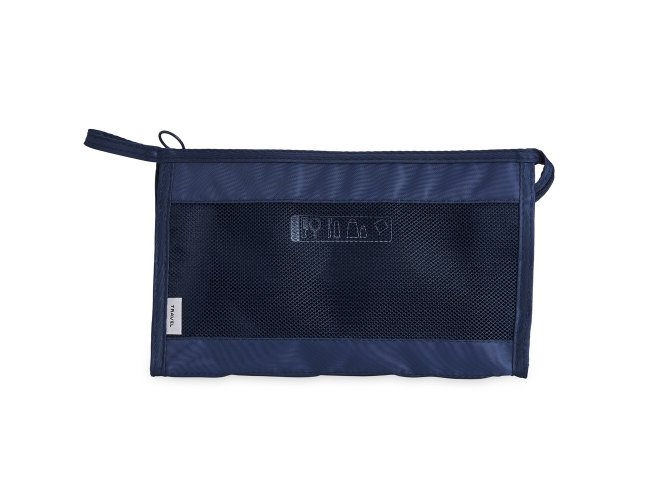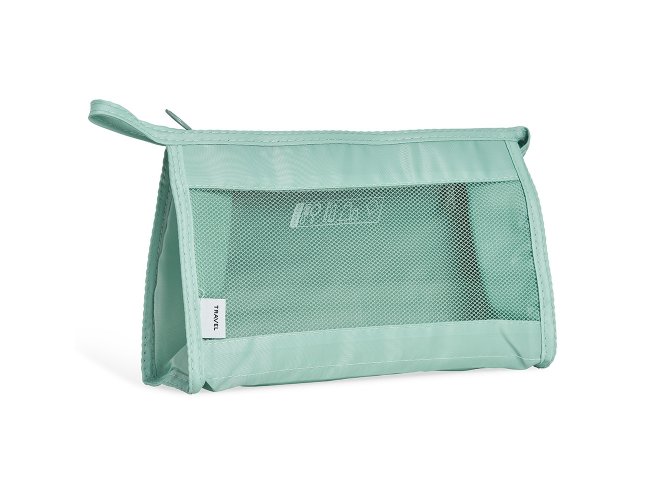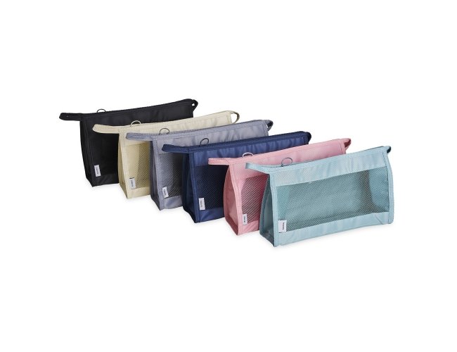 Nécessaire respirável de poliéster com pequeno bolso resistente à água.