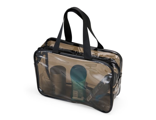 Nécessaire de PVC e PU resistente à água, com duas alças laterais de mão.