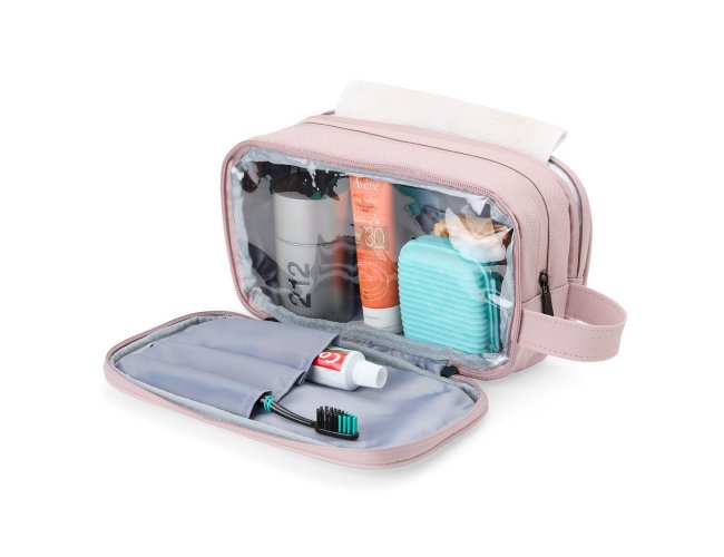 Nossa nécessaire em poliéster PVC é ideal para quem valoriza organização e praticidade em um único acessório. Resistente à água, ela conta com três compartimentos: um específico para itens úmidos, como toalhas, outro maior com dois bolsos internos para manter seus pertences bem guardados, e um compartimento com lateral transparente, perfeito para visualizar rapidamente o que está dentro. Além disso, ela conta com três divisórias internas, perfeitas para armazenar lápis, escova de dentes, cremes e outros itens que desejar. Equipada com duas alças, uma de mão para fácil transporte e outra ideal para pendurar chaveiros, oferece também uma etiqueta central para personalização, permitindo adicionar um toque mais exclusivo. Essa nécessaire é tudo o que o seu cliente precisa para manter tudo organizado, seja onde for.
