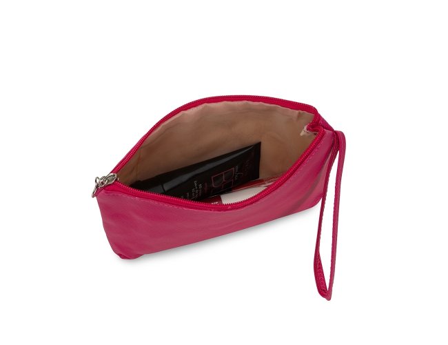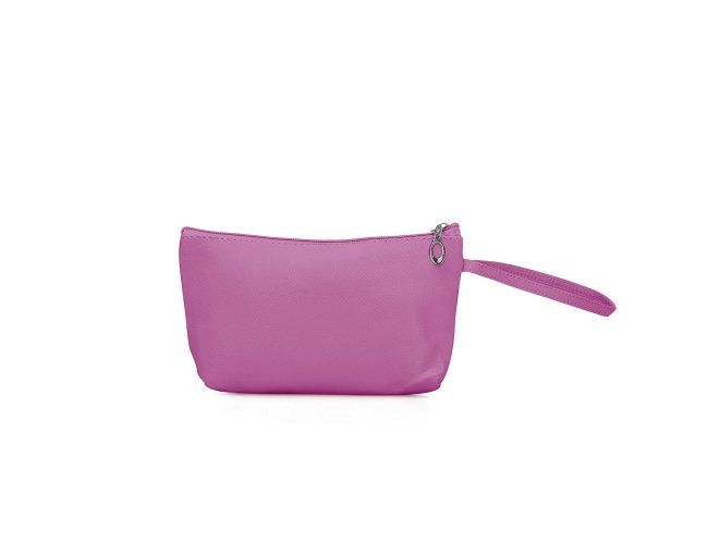 Necessaire confeccionado em PVC impermeável com revestimento interno em poliéster. Conta com alça lateral para transporte.