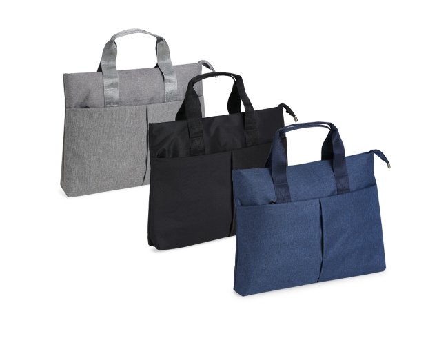 Pasta para notebook 15 em poliéster resistente à água com dois compartimentos, sendo o principal para notebook com bolsos internos e um compartimento frontal.