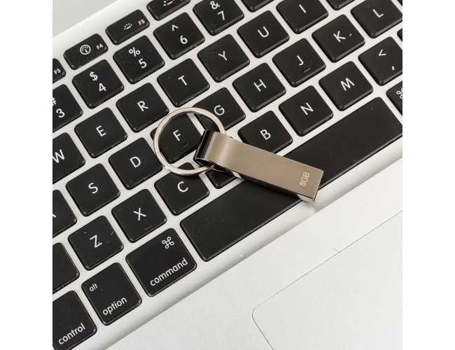 Pen drive metálico de 4GB/8GB/16GB com pintura grafite espelhado e chaveiro.