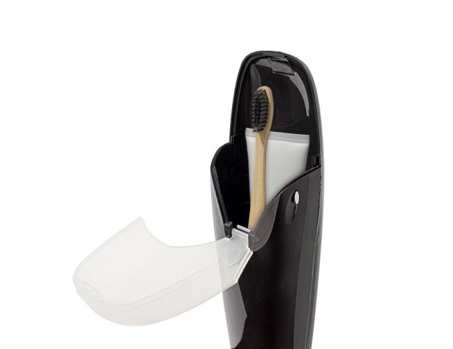 Porta objetos em plástico. Possui tampa com abertura e fechamento por encaixe, proporcionando facilidade ao acesso dos itens.