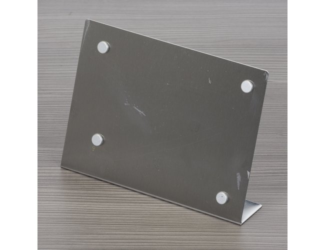 Porta retrato 10 x 15 em inox escovado, modelo chapa metálica acompanha quatro ?botões? imã e película protetora anti-risco.