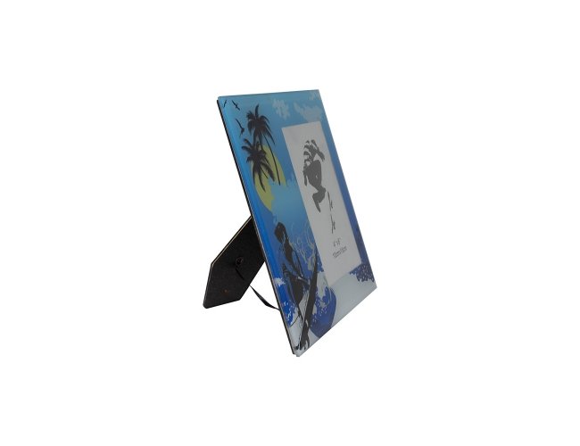 Porta retrato com frente de vidro e parte traseira (apoio) revestida de veludo.