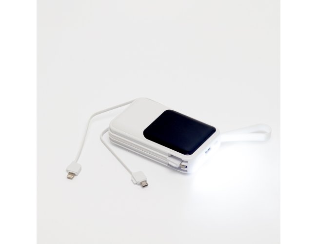 Carregador power bank de 10.000mAh com lanternas e múltiplas saídas. Fabricado em plástico com display integrado, este power bank vem equipado com quatro cabos de carregamento, eliminando a necessidade de transportar cabos extras. Compatível com entradas V8, Tipo-C, Lightning e USB, praticidade é o sinônimo deste carregador. Com alça de borracha e um tamanho compacto para um transporte discreto, ele possui uma capacidade real de 6.000mAh para manter os dispositivos sempre carregados. Acompanha cabo USB-V8.