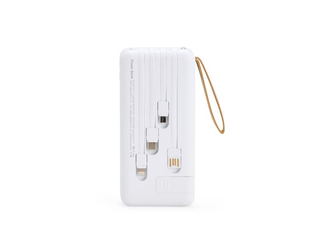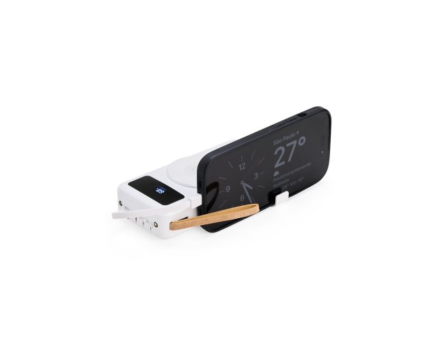 Mantenha a bateria de smartphone e outros dispositivos carregadas com um power bank ágil e eficiente. Feito em plástico e com capacidade de 20.000mAh, ele tem capacidade de sobra para fornecer a recarga necessária para celulares ou tablets nos momentos mais importantes do dia. Possui painel LED com indicador de porcentagem de carga da bateria do aparelho de recarga. Versátil, o power bank é compatível com diversos dispositivos, pois conta com quatro cabos acoplados: USB-C, Micro USB, Lightning e Cabo USB, e também com espaço reservado para carregamento por indução, além de uma saída USB-C, Micro-USB e USB para recarga do carregador. Também apresenta um suporte lateral integrado para manter o celular na horizontal durante o carregamento, facilitando a visualização de vídeos ou participações em reuniões virtuais enquanto o dispositivo carrega, além de uma alça em couro sintético para tornar seu transporte mais prático no dia a dia.