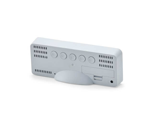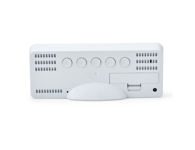 Relógio feito em bambu com detalhes em plástico, três níveis de iluminação em LED para a exibição de informações além das horas, incluindo temperatura ambiente e data do dia. Conta também com a opção de programar alarmes e ajuste de frequência sonora. Funciona com uma pilha AAA (não inclusa) ou via cabo DC de 5V que acompanha o relógio.