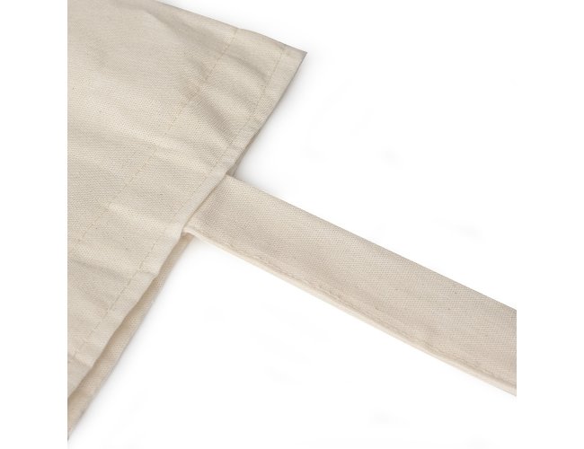Sacola de algodão com alças de costura invertida.