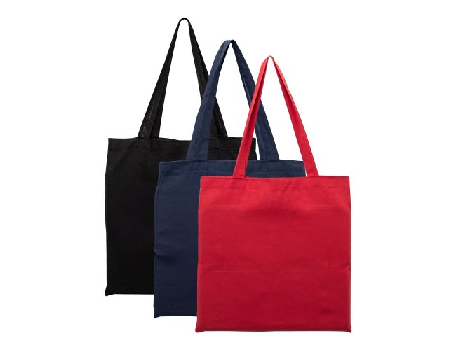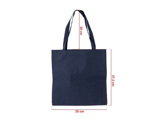 Sacola de algodão com alças costuradas na parte interna.