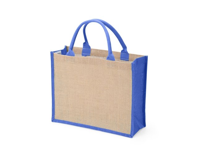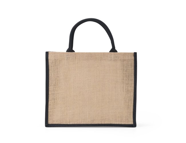 Sacola ecológica confeccionada em juta com alças costuradas na parte interna.