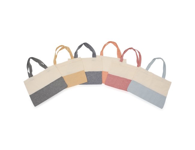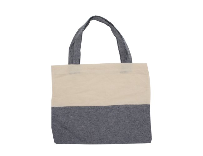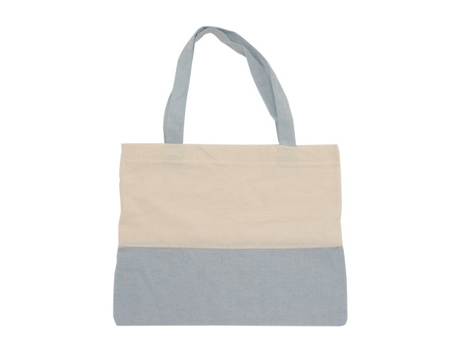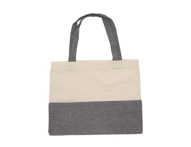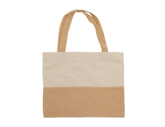 Sacola em algodão com alças costuradas na parte interna.