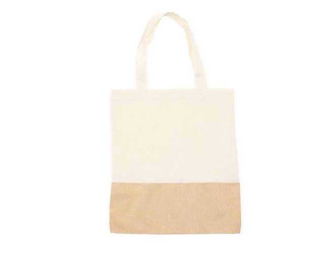 Sacola ecológica de algodão com alças costuradas na parte interna.