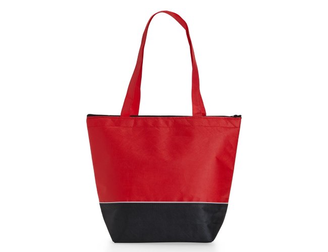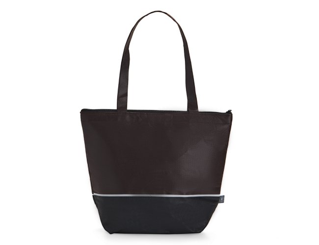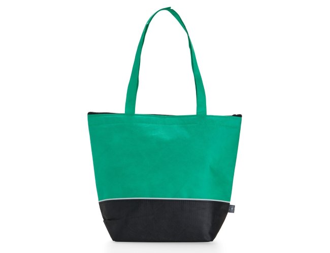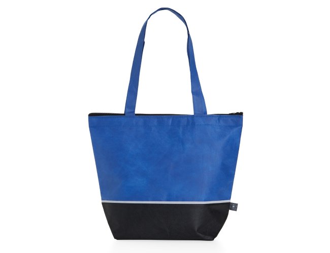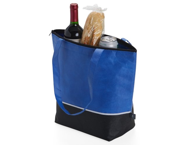 Sacola térmica de rPET com capacidade de 10 litros, contém fechamento com zíper.