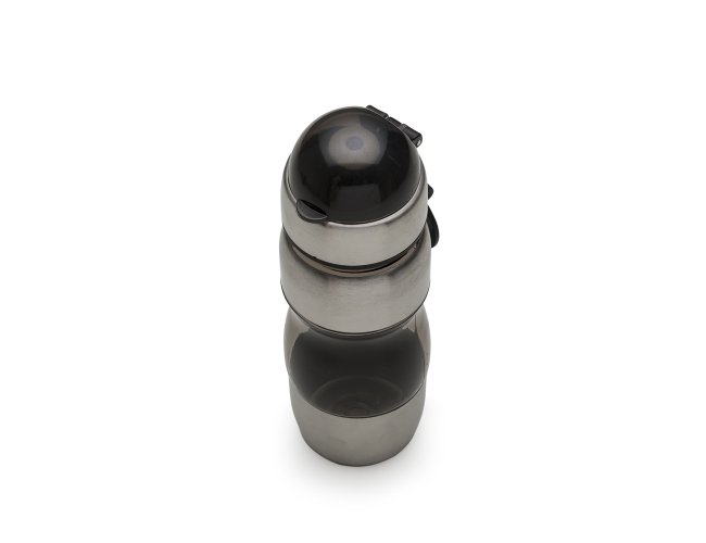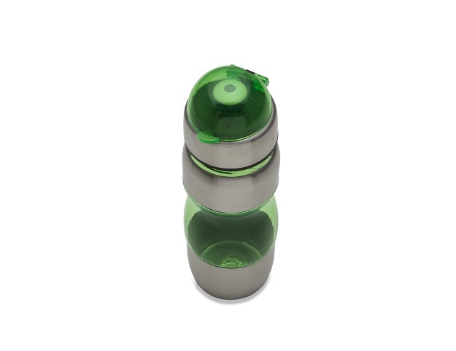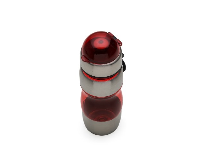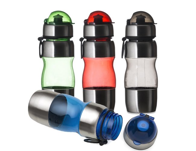 Squeeze de alumínio 450ml com alça plástica e detalhes coloridos. Possui tampa de bico e tampa protetora de plástico resistente.