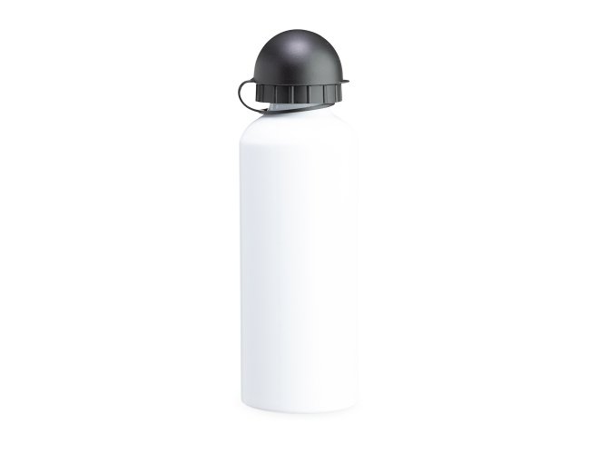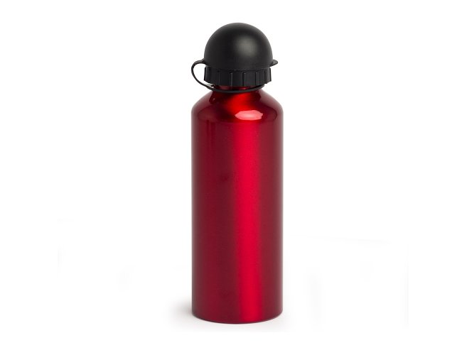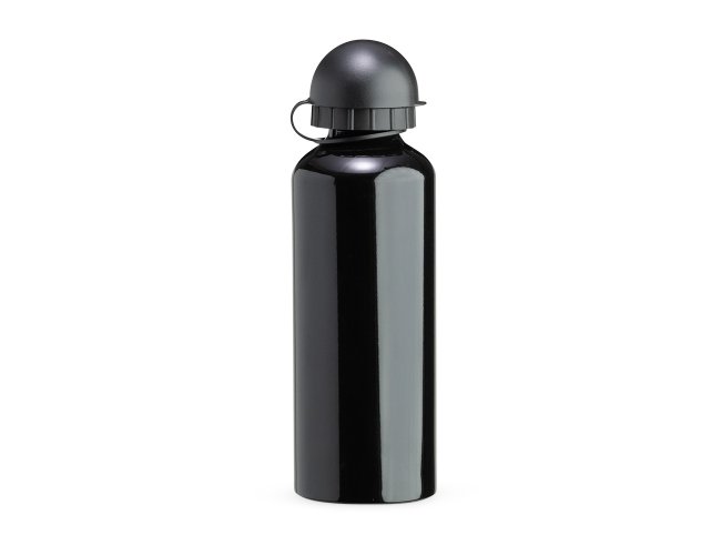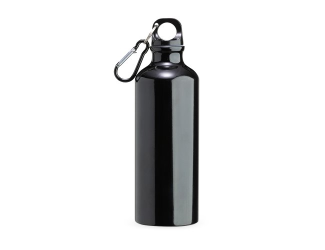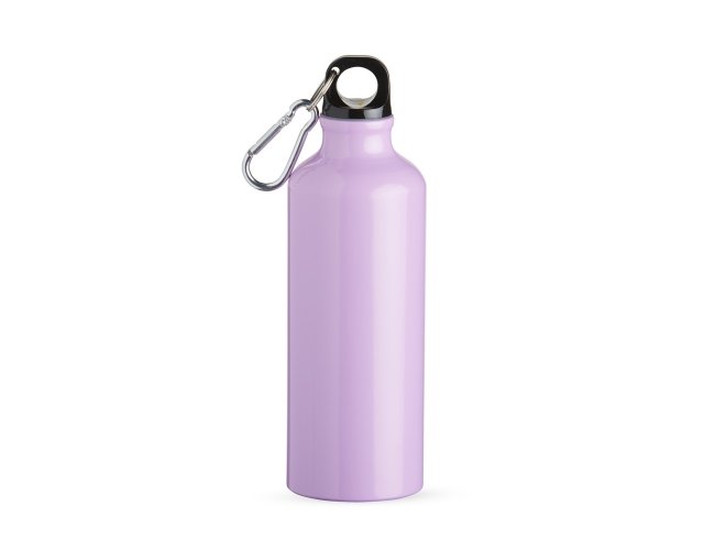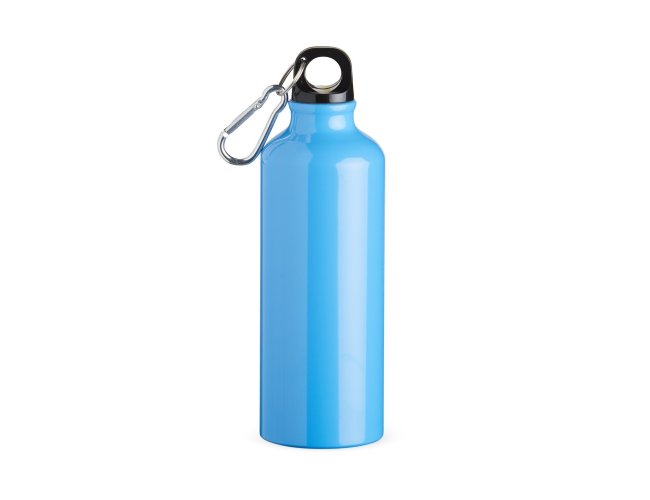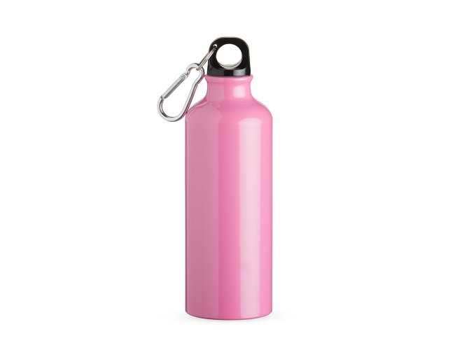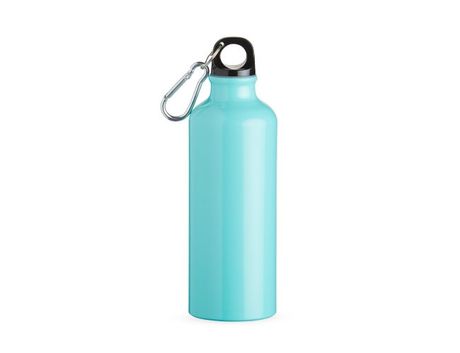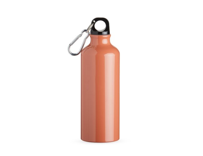 Squeeze 500ml de alumínio com pintura metalizada, tampa rosqueável e acompanha um segundo bico com mosquetão (não é térmico).