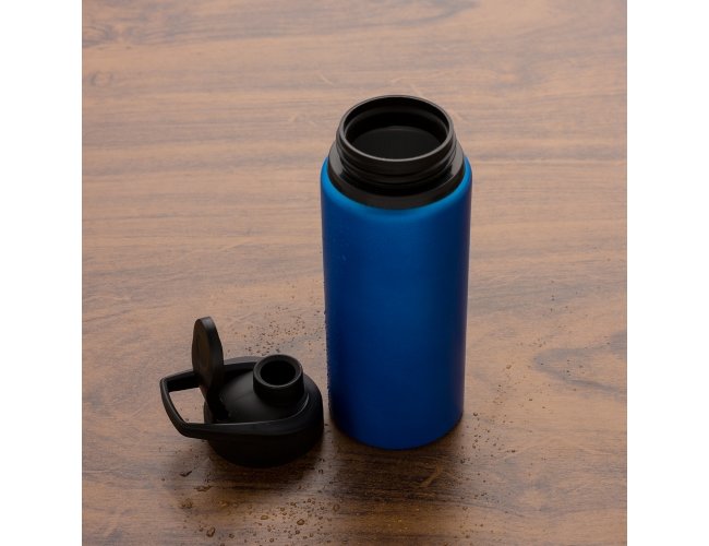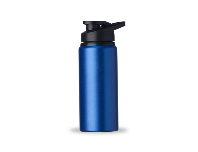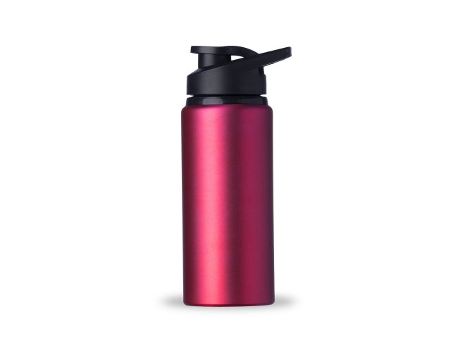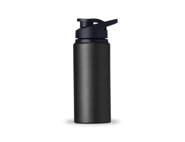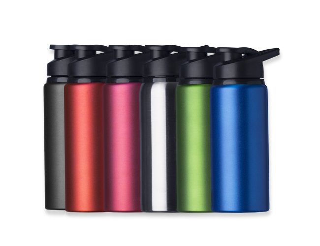Squeeze alumínio de 650ml com pintura fosca. Squeeze com tampa plástica rosqueável, alça e tampa protetora para o bocal.
