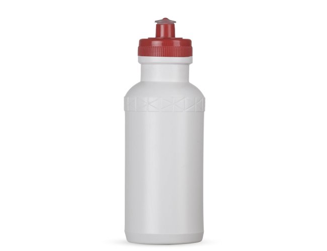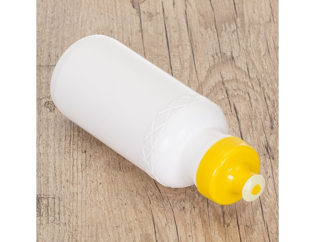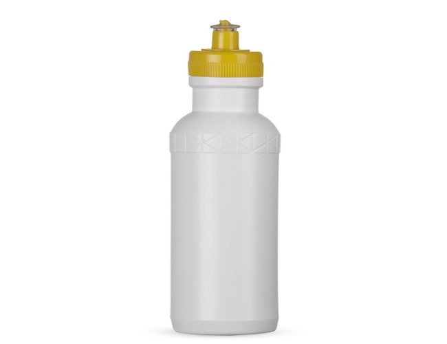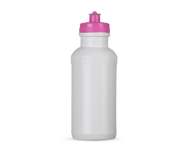 Squeeze 500ml plástico livre de BPA, possui corpo branco com tampa colorida e detalhe em relevo na parte superior. Tampa rosqueável com bico de silicone. OBS.: PEDIDO MÍNIMO 50 PEÇAS!