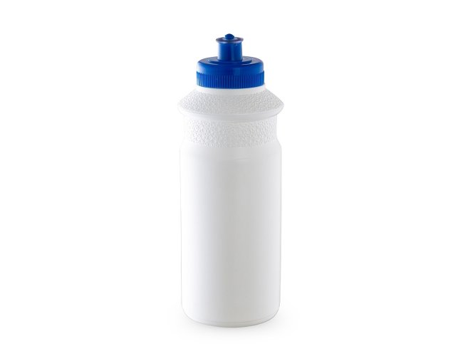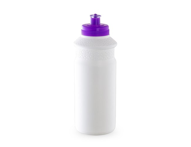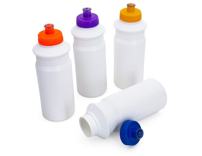 Squeeze 650 ml de plástico resistente, possui detalhe em relevo na parte superior e tampa de bico (silicone) rosqueável.