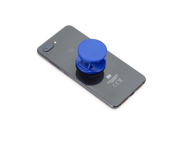 Suporte retrátil para celular em material plástico com verso adesivado (3M). Utilização como ?anel anti-furto? ou suporte de sustentação para o celular.