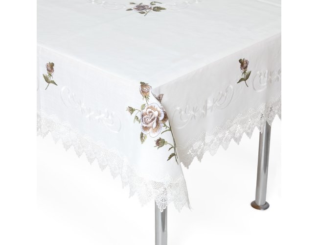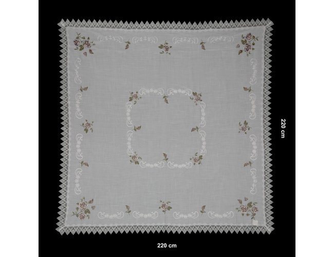 Toalha de mesa quadrada em tecido 100% Poliéster.