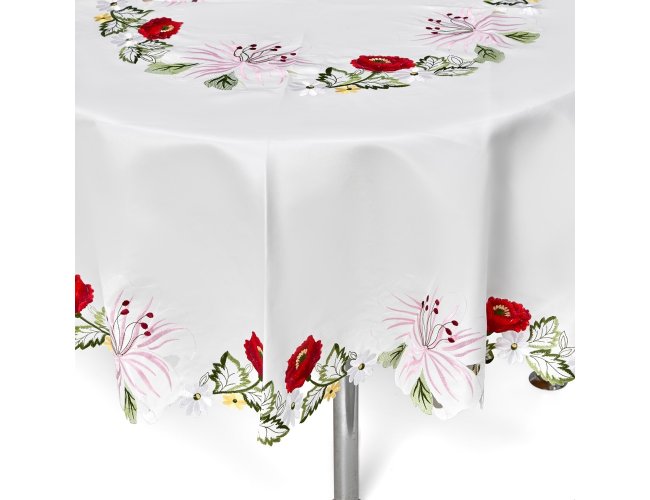 Toalha de Mesa Redonda em tecido 100% Poliéster.
