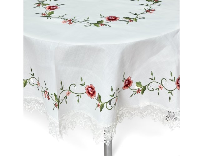 Toalha de Mesa Redonda em tecido 100% Poliéster.