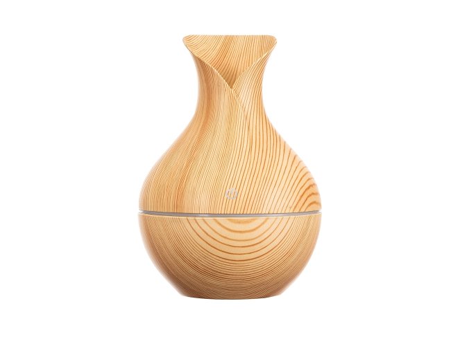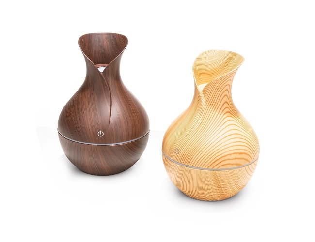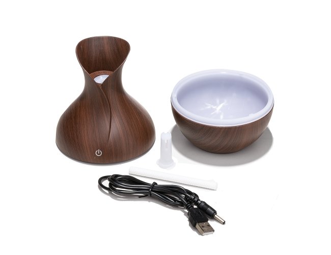 Umidificador ultrassônico com led de 7 cores com exibição alternada. Produzido em plástico estilizado em madeira, Umidificador possuí capacidade de até 130ml e funciona apenas a base de água. O produto não armazena carga, a sua utilização só pode ser feita com cabo USB. Taxa de consumo de 2W e taxa de tensão de DC5V. Acompanha refil de filtro de algodão e um cabo USB. Obs.: A limpeza externa do produto deve ser feita apenas com pano umedecido, caso submergir o produto o equipamento pode ser danificado. Obs.: Atenção, não devem ser utilizadas essências!