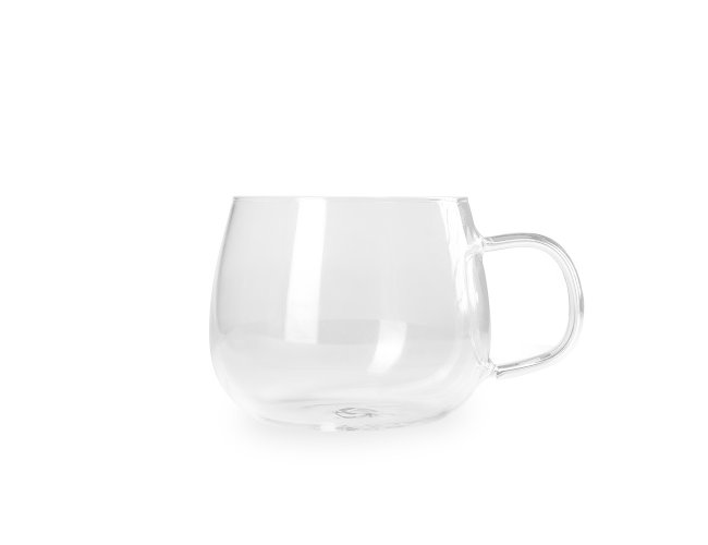 Xícara de vidro transparente com capacidade de 350ml.